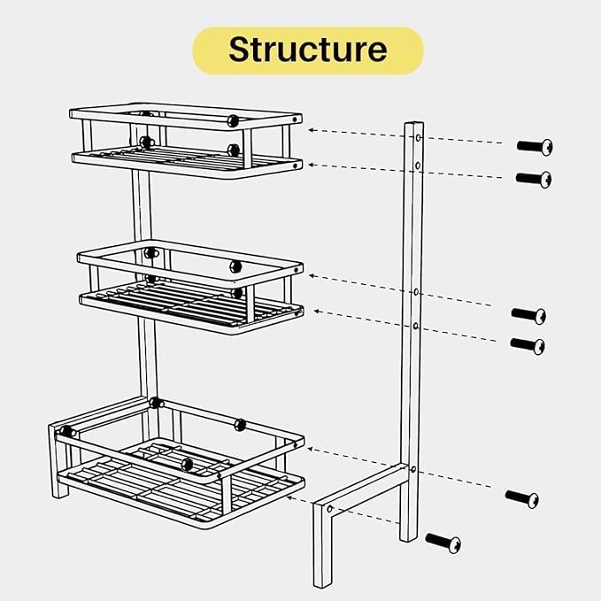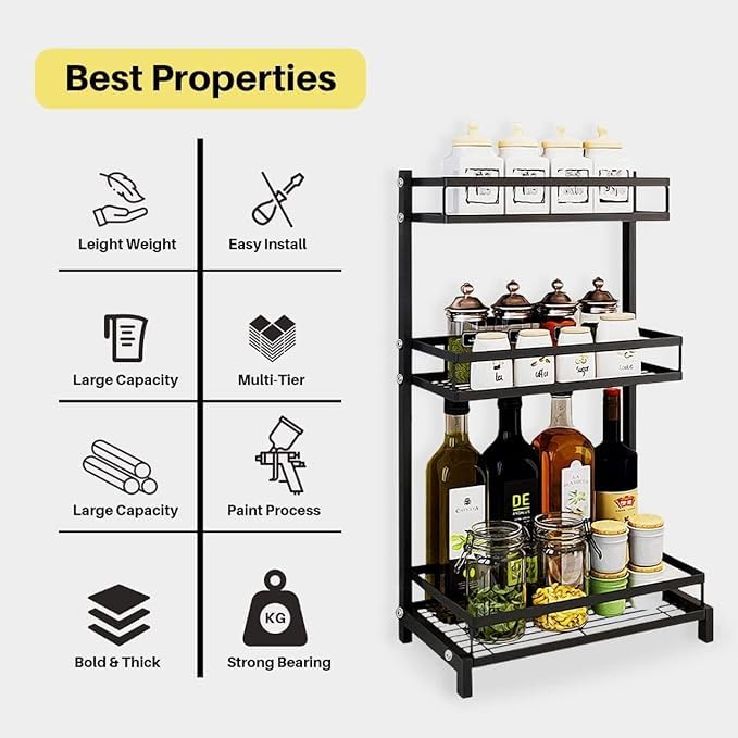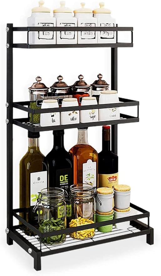 Generic - منظم رفوف توابل للاستخدام العام المطبخ لزجاجة برطمانات صوص التوابل مزود بثلاث علاقات تخزين عداد متعدد الاغراض ورف 3 طبقات صافي الوزن 30166 فولاذ كربوني معدني الالوان الألوان