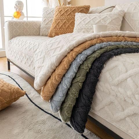 Generic - جيني طقم شراشف من فرو الجاكار الصناعي من 10 قطع، اغطية للاريكة والكرسي، تتضمن اريكة كبيرة 190×90 سم، اريكة صغيرة 145×90 سم، كرسيين 80×80 سم، 6 اغطية وسائد 50×50 سم (اوف وايت)