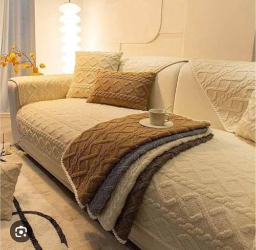 Generic - Generic 10-Piece Sofa Cover Set, Jacquard Cotton, 190x90 cm Large Sofa Cover, 145x90 cm Small Sofa Cover, .flo (beige)