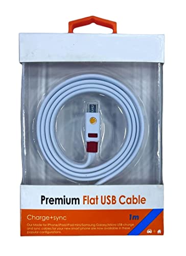 Generic - Generic 1m Flat Micro USB to USB Cable - White, Tangle Free, CE Certified, For Smartphone, Tablet, PC Charging