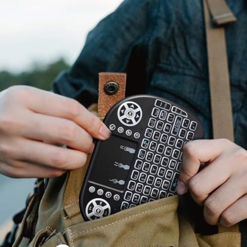 - لوحة مفاتيح لاسلكية صغيرة 2.4 جيجا مع ماوس لوحة تعمل باللمس ذاكرة إضاءة خلفية بي ار جي متعددة مطورة محمول مع مستقبل USB وجهاز تحكم عن بعد لأجهزة اندرويد سمارت تي في بوكس باد وويندوز وماك.