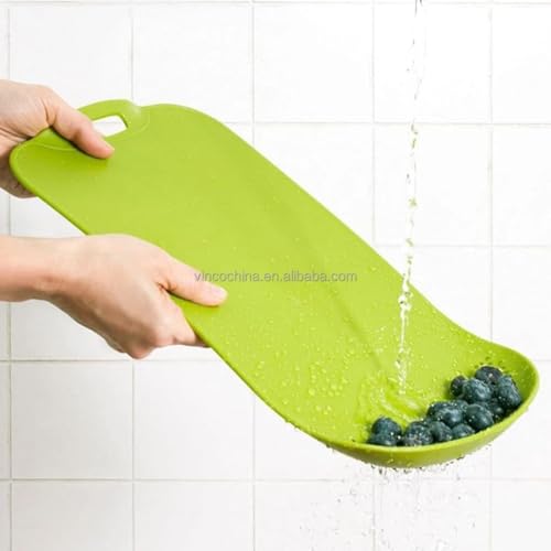 - VERSATILE DESIGN: 2-in-1 flexible cutting board and strainer combination eliminates the need for multiple kitchen tools, perfect for food preparation and washing