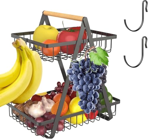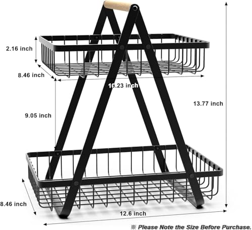 Generic - Generic 2 Layers Premium Fruit Stand with Wooden Handle - Unique Design - Black - 50 cm