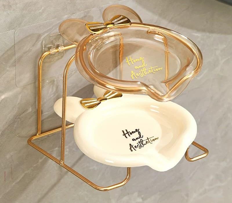 Generic - Generic 2 Tier Acrylic Soap Dish with Gold Bow, Clear and Decorative Bathroom Organiser .db