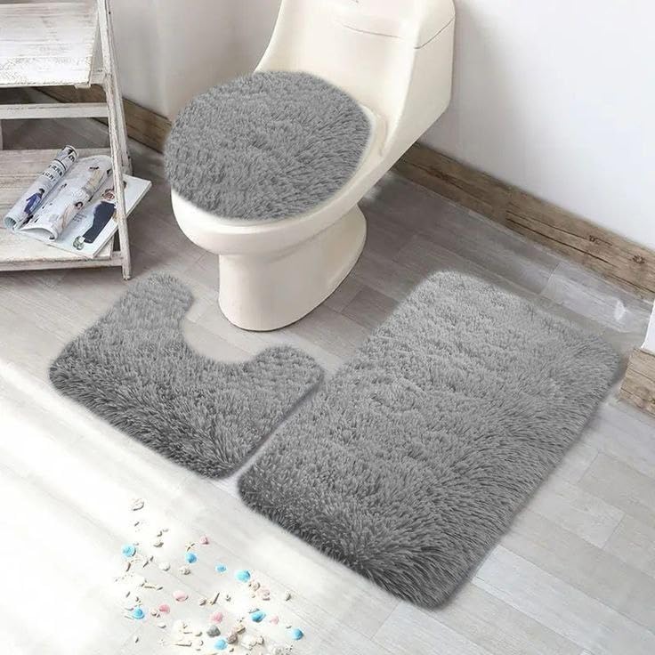 Generic - Generic 3-Piece Shag Bathroom Mat Set, Non-Slip Backing, Grey