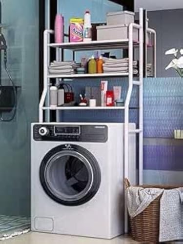 Spaceshoop - Generic 3-Tier Space Saving Bathroom Shelf, Over Toilet Shelf, Bathroom Corner Holder, Storage Organizer Accessories, Washing Machine, Bathroom Tower Shelf (Washing Machine Rack), White, Polished