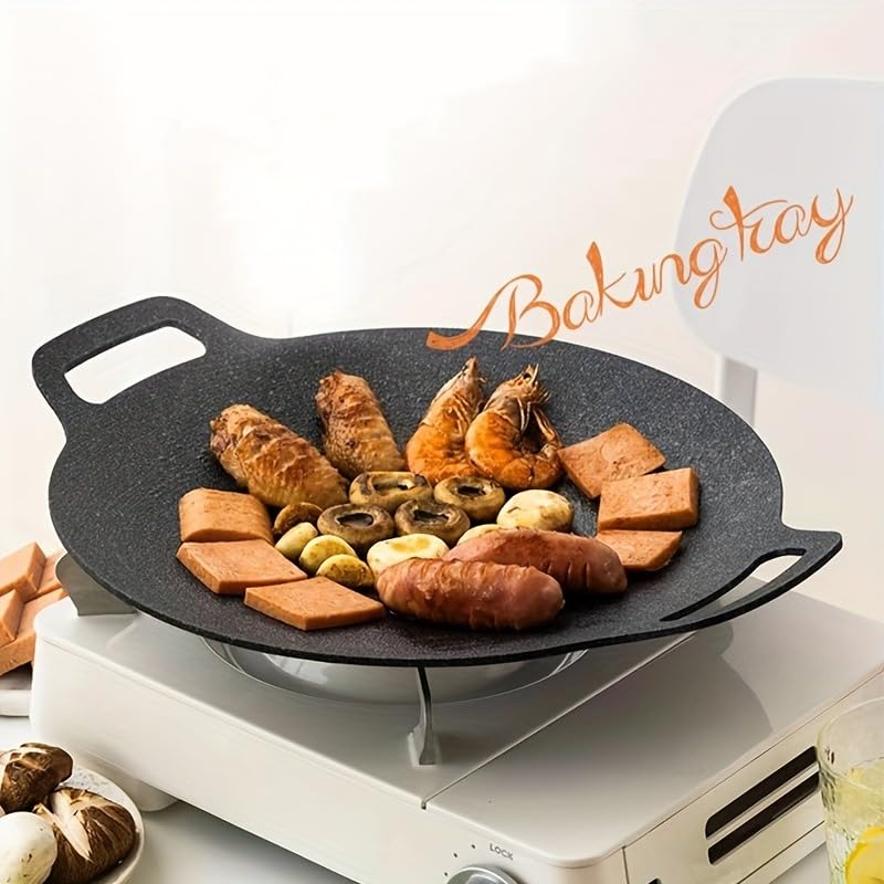Generic - Generic 30cm Korean Flat Grill with Granite Lid - Ideal for Grilling Meat, Fish, Pizza and More - Imported, Easy to Clean and Use Generic