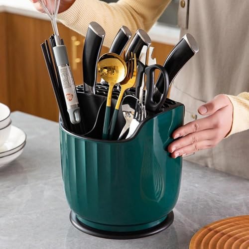 Generic - Generic 360° Rotating Kitchen Utensil Holder, Green Ceramic Cutlery Organiser with Base .mk