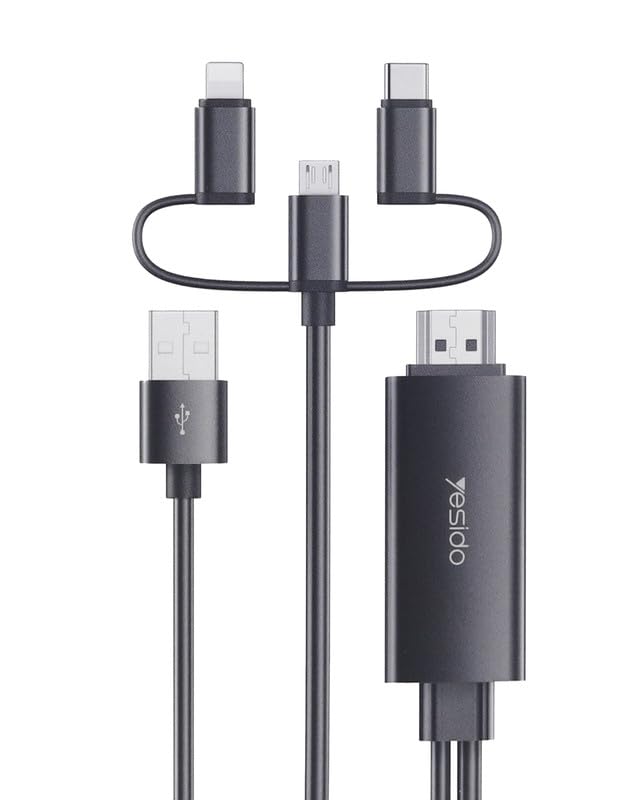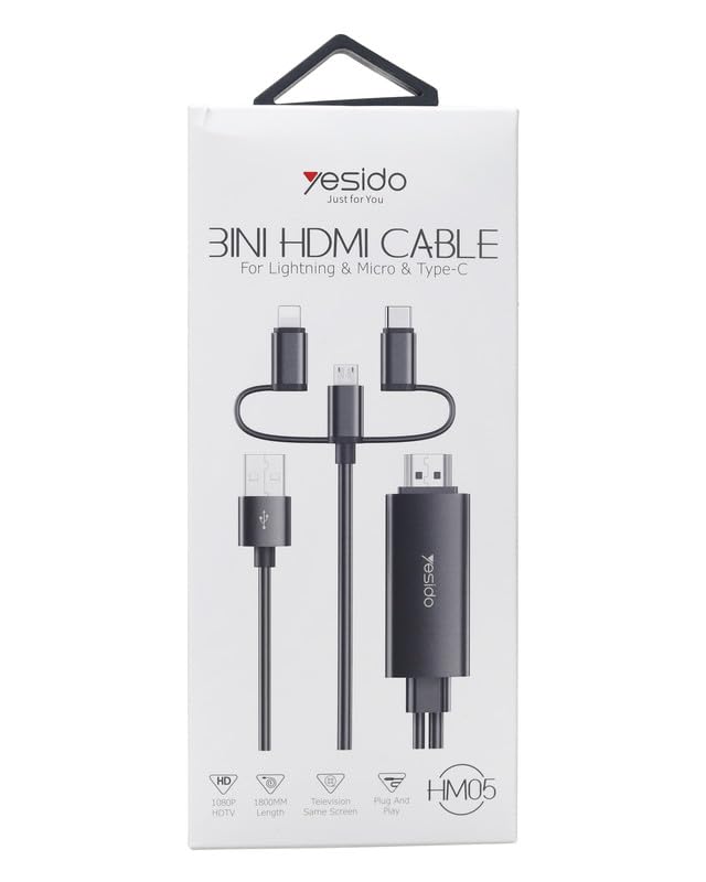 Generic - Generic 3in1 HDMI Cable, 180CM, Black, Supports Lightning, Micro USB, Type-C, Compatible with iPhone, iPad, Samsung Galaxy, Oppo Find, Smartphone, Laptop, Tablet, Android devices