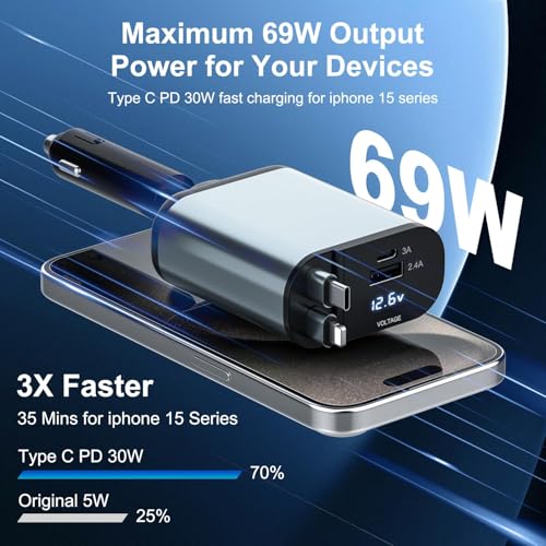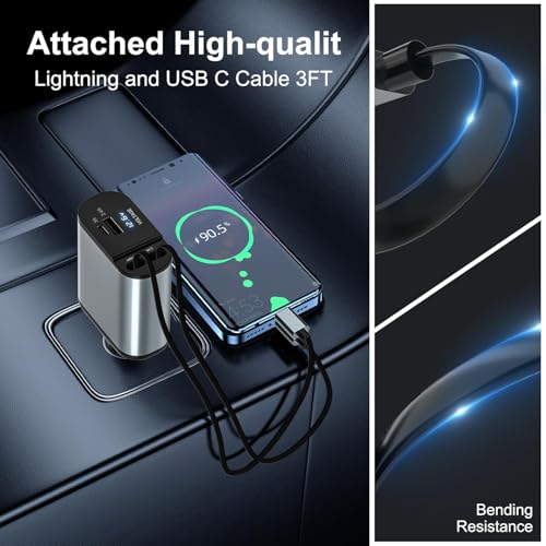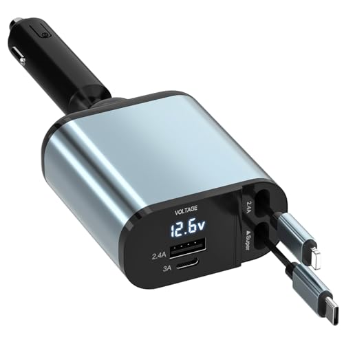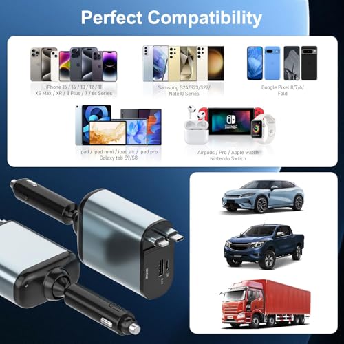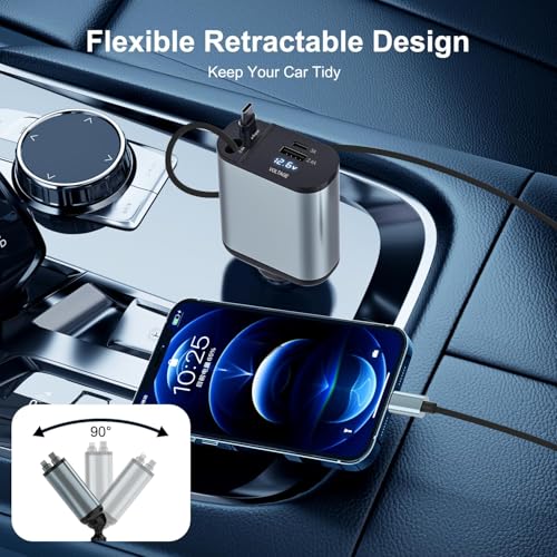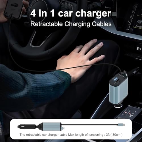 Generic - Generic 4-in-1 Fast Retractable Car Charger USB-C 100W With Retractable Cables LED USB Port