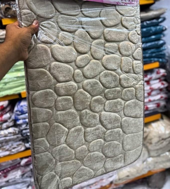 Generic - Generic 4-Piece Bathroom Mat Set with Bubbly Texture, Non-Slip Backing, Grey Stone Pattern .flo (beige)