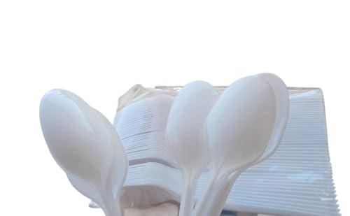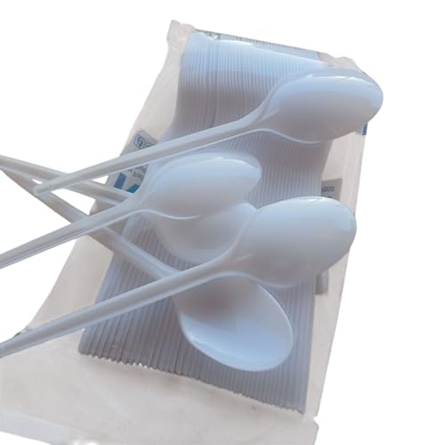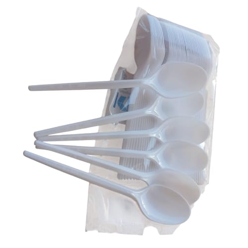Generic - جيني طقم ملاعق متوسطة من البلاستيك بلون ابيض، 50 قطعة، متينة، لتناول الطعام والمكتب