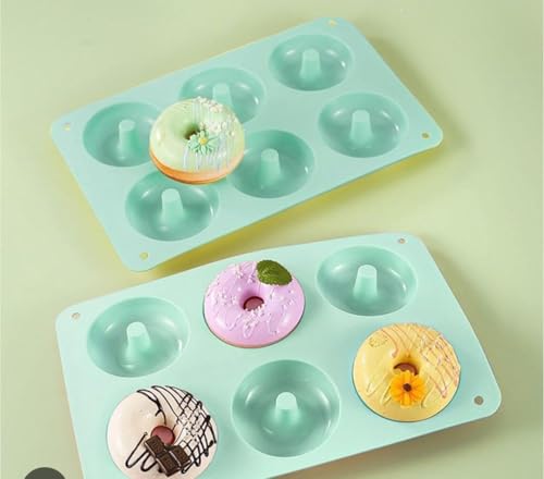 - تصميم فاخر: قالب دونات من السيليكون ذو 6 تجاويف مصنوع من سيليكون عالي الجودة آمن غذائيًا بلون أخضر فاتح جذاب