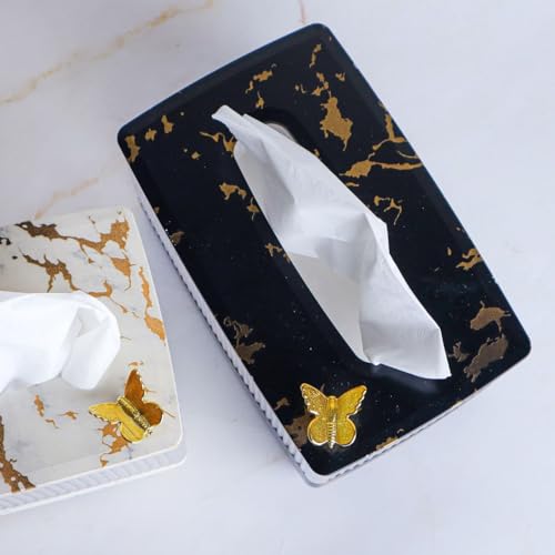 - تصميم أنيق: حامل علبة مناديل خشبي أسود مع جوانب أكريليك شفافة ولمسة فراشة ذهبية مزخرفة تخلق مظهرًا أنيقًا لأي غرفة