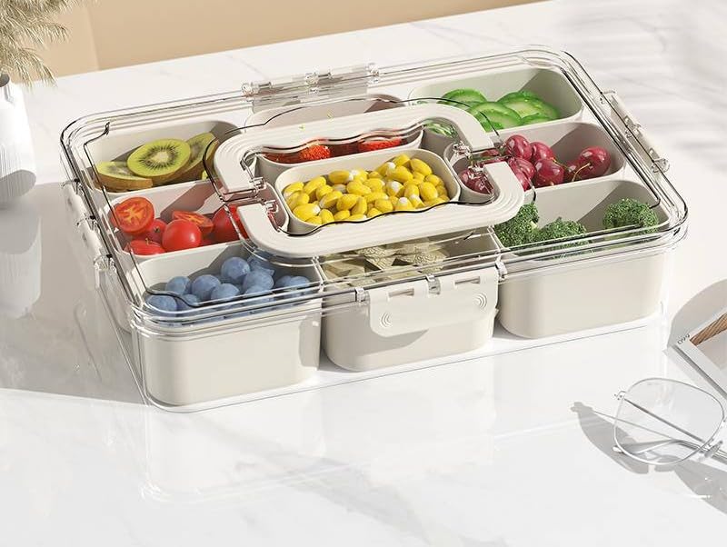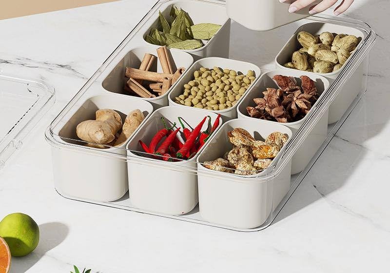 Generic - Generic Acrylic Organiser Box with 9 Removable Compartments, Airtight Seal, Clear Storage Container for Spices, Snacks, Accessories, Refrigerator .soh
