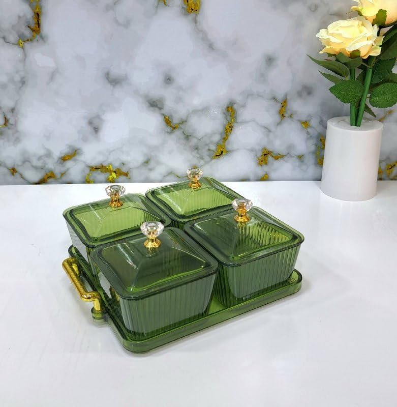 Generic - Generic Acrylic Snack Set with Crystal Handle Lid and Tray, 4 Pieces, (olive green), .mk