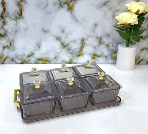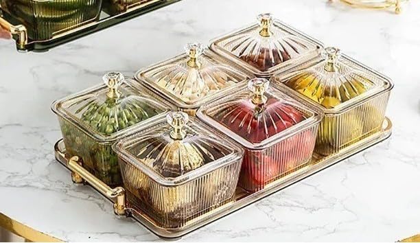- ORGANISED STORAGE: Set includes 6 individual compartments with fitted lids to keep different snacks separate and fresh, ideal for entertaining guests or everyday use at home