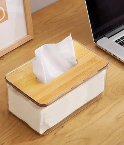Generic - علبة مناديل اكريليك مع غطاء من البامبو، سعة كبيرة 550 منديل، شفاف