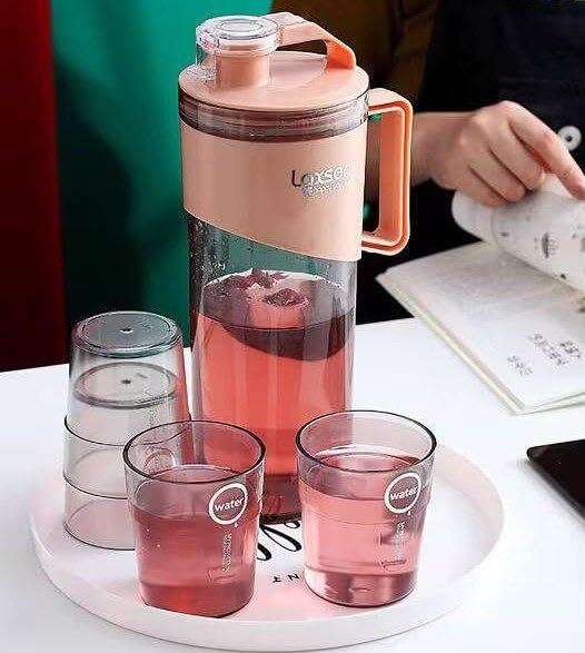 Generic - Generic Acrylic Water Jug with 4 Cups Set, 1500ml Pitcher with Handle and Lid, 300ml Glasses, Pink, 5 Piece Drinkware Set, .Ar