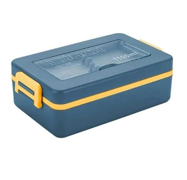 Generic - صندوق غداء مكون من 3 أقسام للبالغين من البلاستيك محكم الغلق مع ملعقة وشوكة، لانش بوكس للطلاب مقاوم للتسرب وقابل للاستخدام في الميكروويف، سعة 1100 مل، (لون أزرق)