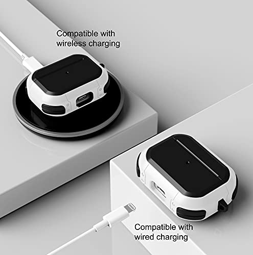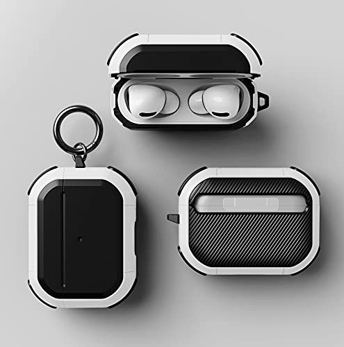 Generic - جراب حماية لسماعات ايربودز برو مع سلسلة مفاتيح، جراب متين بتغطية كاملة للهيكل من الفئة العسكرية، ذو تصميم مرن ممتص للصدمات من اوليباند، حافظة حماية متينة للغاية، أبيض