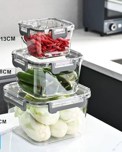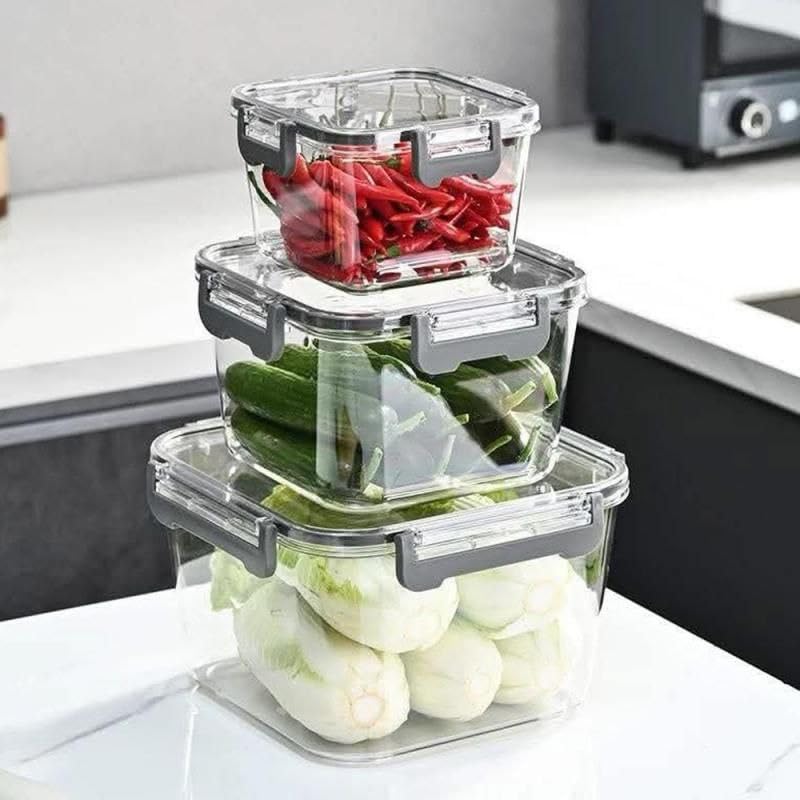 - VERSATILE STORAGE SET: 3-piece set includes different square-sized containers perfect for organising various food items, from small legumes to larger vegetables and fruits