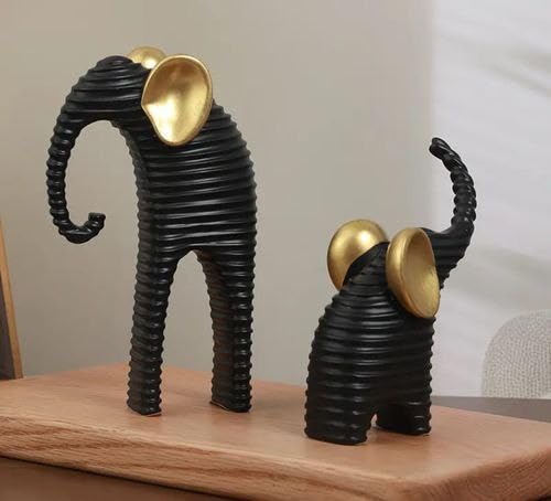 Generic - Generic Alpumi Modern Abstract Figurine Set, White Ribbed Sculpture with Gold Accents, Contemporary Home Decor, 2-Piece (black)