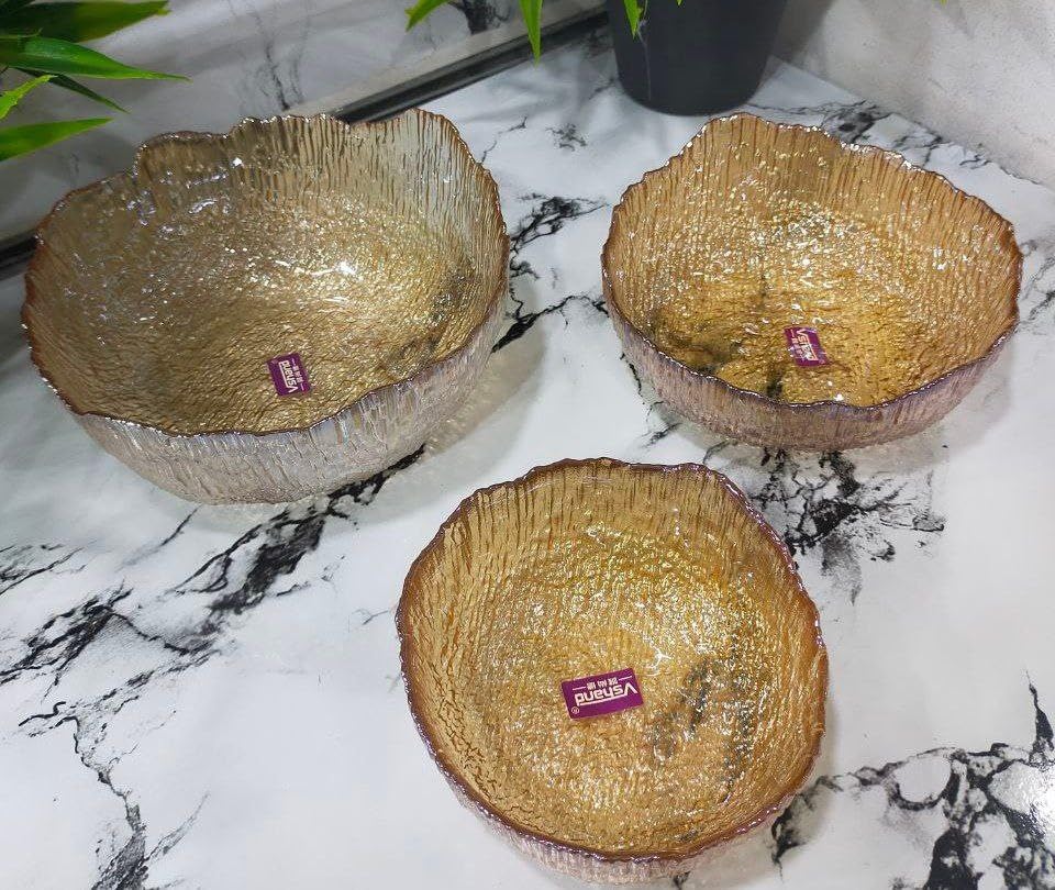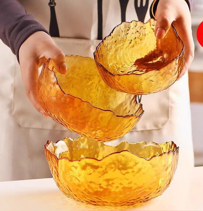 Generic - Generic Amber Glass Serving Bowls Set, 3-Piece Honeycomb Pattern, Nesting Bowls for Salad, Fruit and Snacks .db