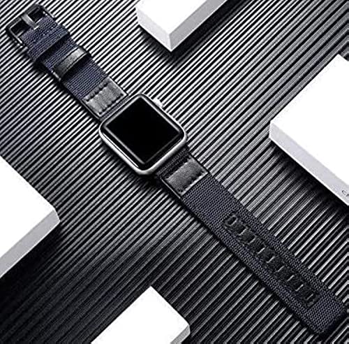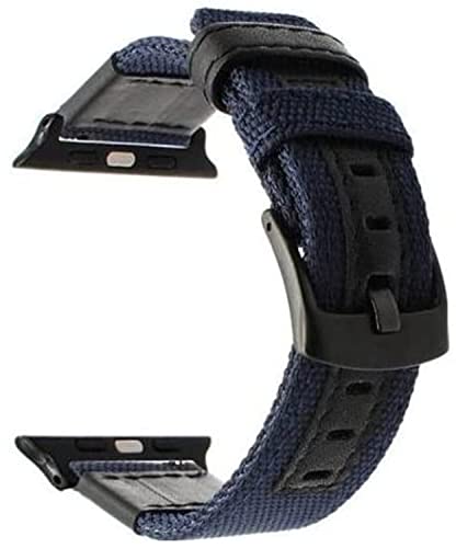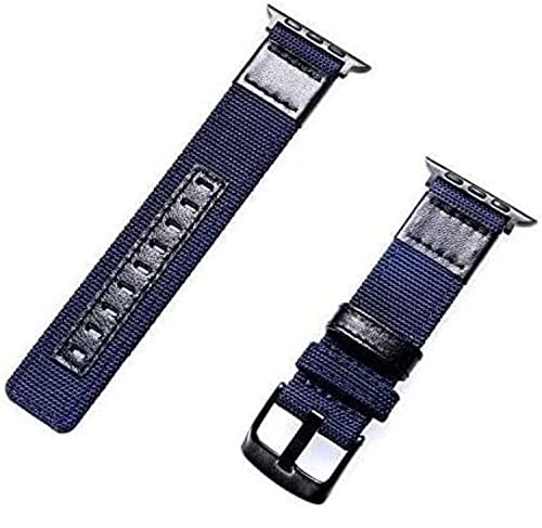 MHM - ساعة ابل سلسلة 7 بسوار من النايلون والجلد الطبيعي مقاس 45 ملم وابزيم معدني - لون ازرق- اسود للكبار الجنسين