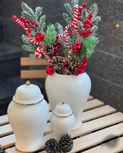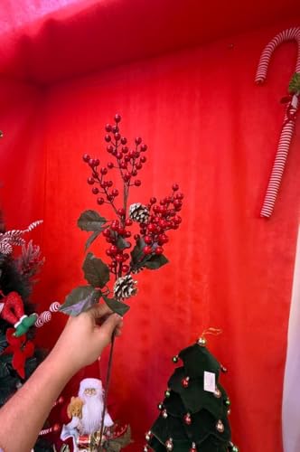 - VERSATILE DECOR: Artificial berry spray pick with realistic red berries, pine cones, and green leaves - perfect for enhancing Christmas trees, wreaths, and winter decorations