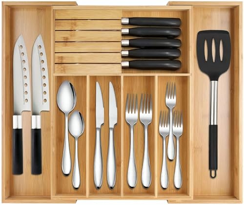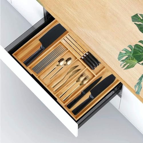 Generic - Generic Bamboo Expandable Kitchen Drawer Organizer, Utensil Drawer Organizer and Storage Containers with Drawers, Cutlery Storage Box for Silverware, Cutlery, Knives in Kitchen, Living Room