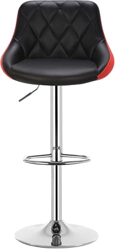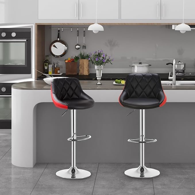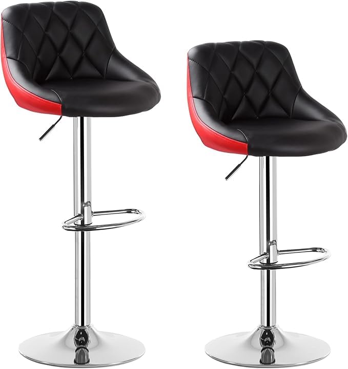 - Stylish Design: These bar stools boast a quilted, diamond-tufted black faux leather upholstery and sleek red accents for an eye-catching, contemporary look.