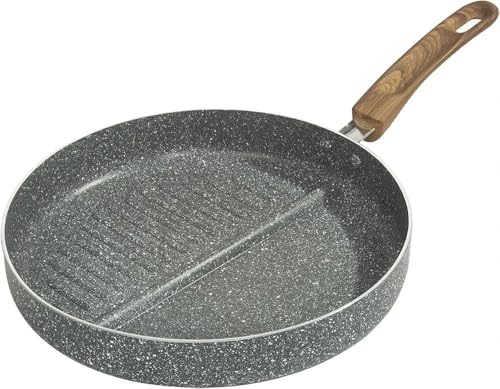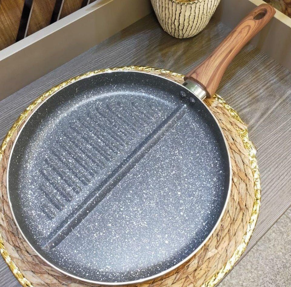 Generic - طاسة شواء جرانيت بارولي مقاومة للالتصاق بمقاس 26 سم ومقبض خشبي، طاسة شواء دائرية 2 في 1 للشواء