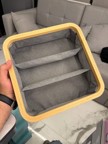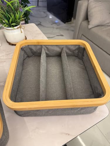 - VERSATILE DESIGN: Square organiser tray featuring 9 equal compartments with grey linen interior lining and elegant bamboo frame exterior, perfect for bathroom essentials