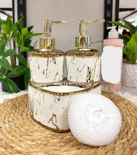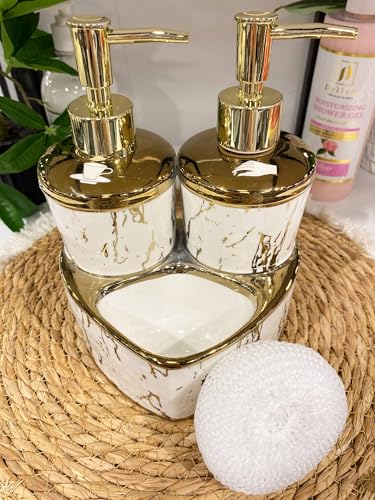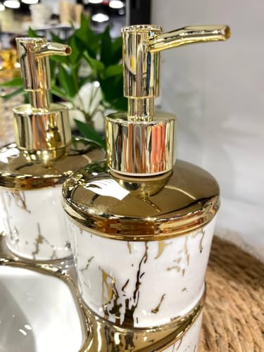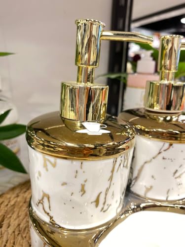 Generic - Generic Bathroom Soap Dispenser and Dish Set, Gold Plated Porcelain, 3-Piece Kitchen and Bath Accessory Set, white .P