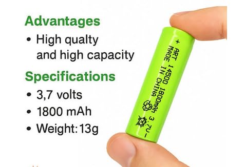 - Generic Battery AA 14500 Cell 3.7V (Real Capacity : 1800mah) 1Piece