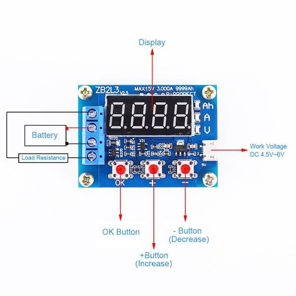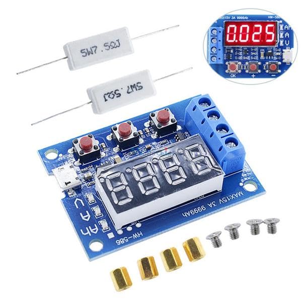 - Battery capacity tester discharge type 1.2-12V is an external load capacity of the battery and 18650 test tool, in a single-function, by controlling the load off and get real-time integrated discharge current capacity results. Maximum support 15V 3A discharged through the discharge voltage and current, itself does not discharge Automatically identify and develop appropriate battery termination voltage can also be manually adjusted.