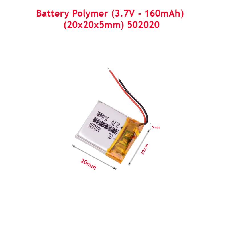 - Generic Battery Polymer (3.7V – 160mAh) Single Cell (20x20x5mm)