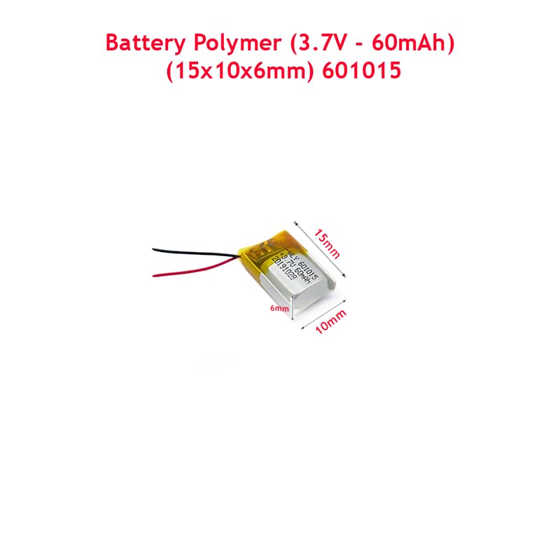 - Generic Battery Polymer (3.7V – 60mAh) Single Cell (15x10x6mm)