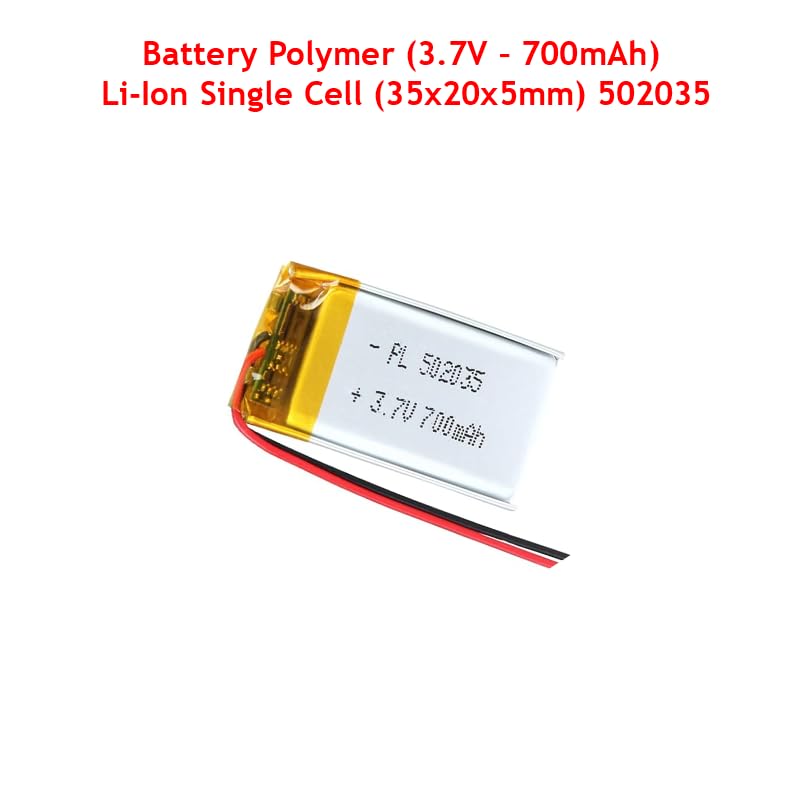 - Generic Battery Polymer (3.7V – 700mAh) Single Cell (35x20x5mm)