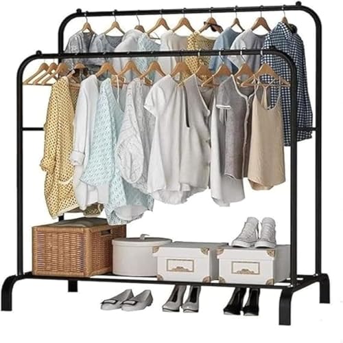 Spaceshoop - رف ملابس حديد، قضيب مزدوج، 2 رف، محمول، للملابس والمعاطف، أسود، 50 سم عرض × 100 سم ارتفاع × 1 سم عمق