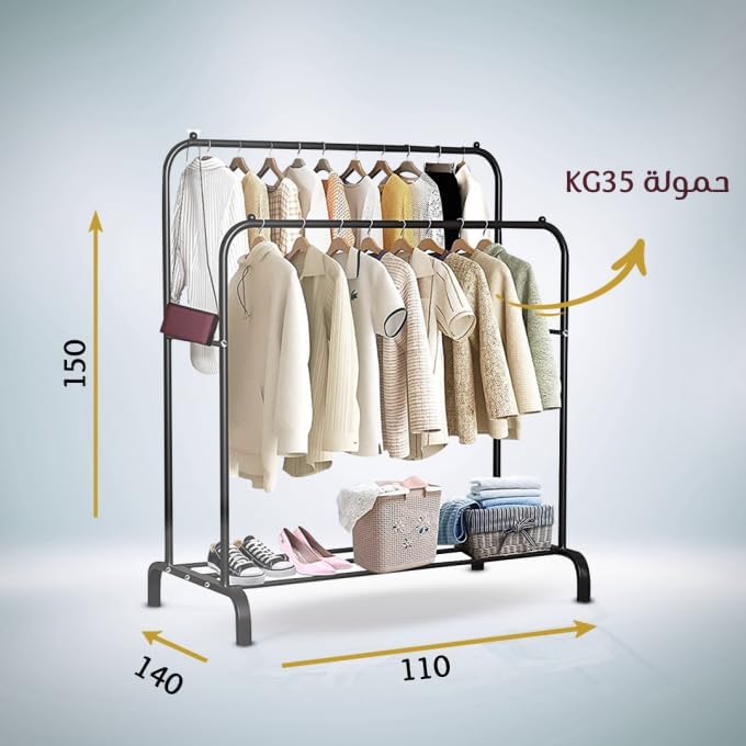 - 【مساحة تخزين كبيرة】بفضل تصميم القضبان المزدوجة يمكنه استيعاب ضعف عدد الملابس لتلبية احتياجات حياتك. يمكن للرف السفلي أيضًا أن يستوعب عدة أزواج من الأحذية. 【مساحة تخزين كبيرة】: تصميم القضبان المزدوجة يجعله يستوعب ضعف عدد الملابس لتلبية احتياجاتك اليومية. يمكن للرف السفلي أيضًا أن يستوعب عدة أزواج من الأحذية.