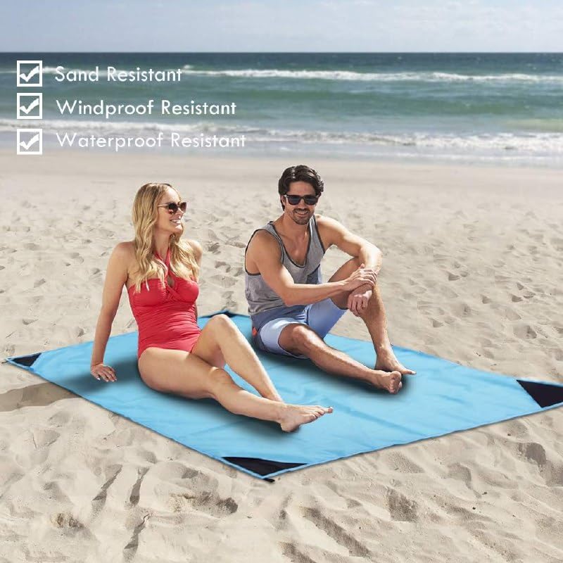 Generic - بطانية شاطئ للتخييم جيب مقاومة للماء محمولة للنزهة في الهواء الطلق حصيرة التخييم نزهة السفر الشاطئ الرملي اسود نايلون