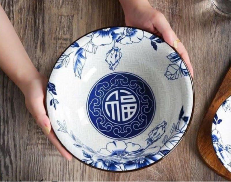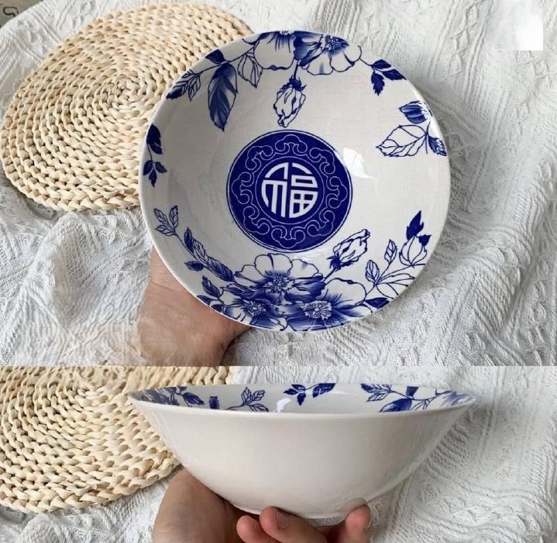- Traditional Chinese Design: Features an elegant blue and white porcelain pattern with hand-painted floral motifs and a central Fu (fortune) symbol, bringing authentic oriental aesthetics to your dining table