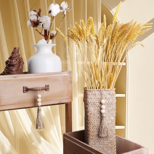 Generic - جيني اكليل شرابة من الخرز الخشبي بنمط بوهو، حبل من الجوت الطبيعي للتعليق على الحائط، خرز خشبي بيج مع شراشيب لبيت المزرعة، 8 قطع، ديكور منزلي ريفي مصنوع يدويا