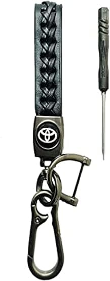 Generic - ميدالية وسلسلة مفاتيح سيارة جلد مضفرة جودة عالية - متوافق مع شعار تويوتا-، اسود