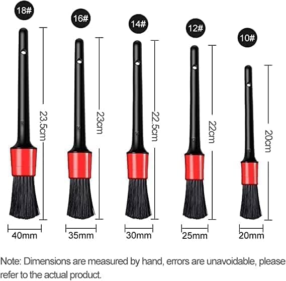 - VERSATILE SET: Complete 5-piece car detailing brush set designed for thorough cleaning of both interior and exterior vehicle surfaces.