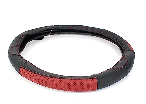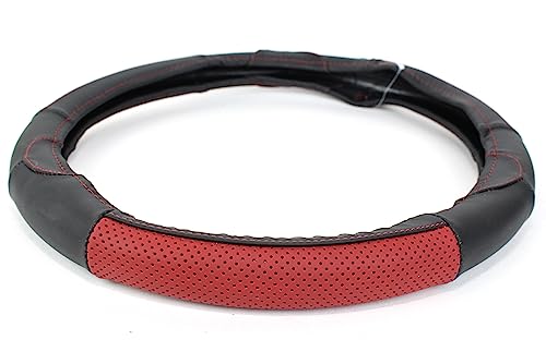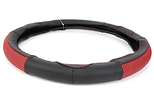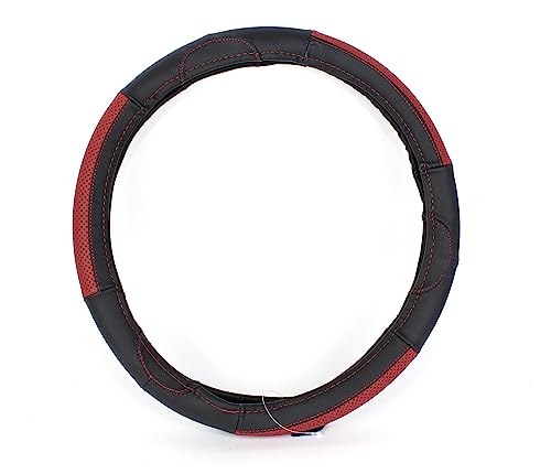 Generic - Generic Car Steering Wheel Cover, Leather Non-Slip Car Wheel Cover Protector Breathable Microfiber Leather Universal Fit for Most Cars, for All Season, Ergonomic Comfort Grip Cover - Black & Dark Red