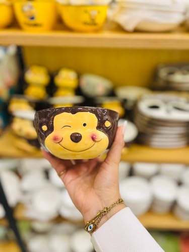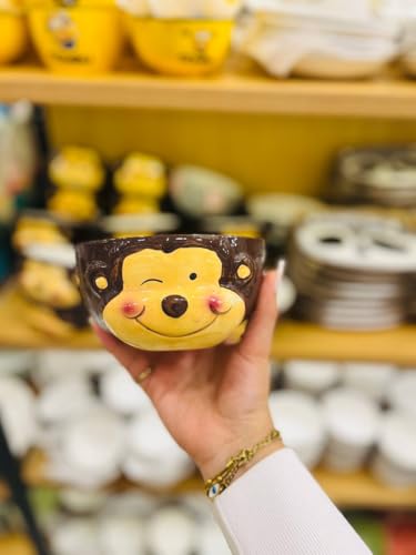 - DESIGN: Charming monkey-face ceramic bowl featuring a brown and yellow colour scheme with an adorable smiling expression, perfect for adding personality to your dining table