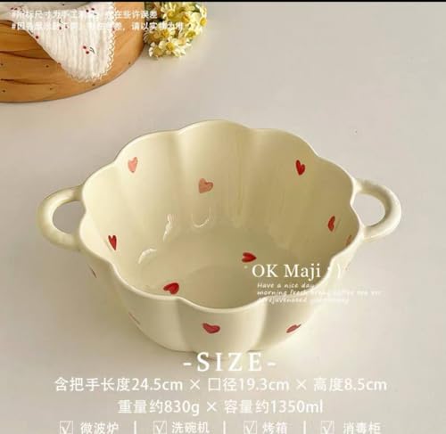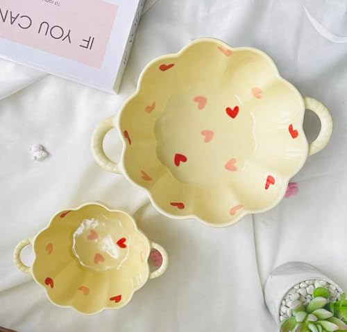 - CHARMING DESIGN: Elegant cream-coloured ceramic bowl features a delightful scalloped edge with adorable red and pink heart pattern, adding a touch of warmth and style to your dining table